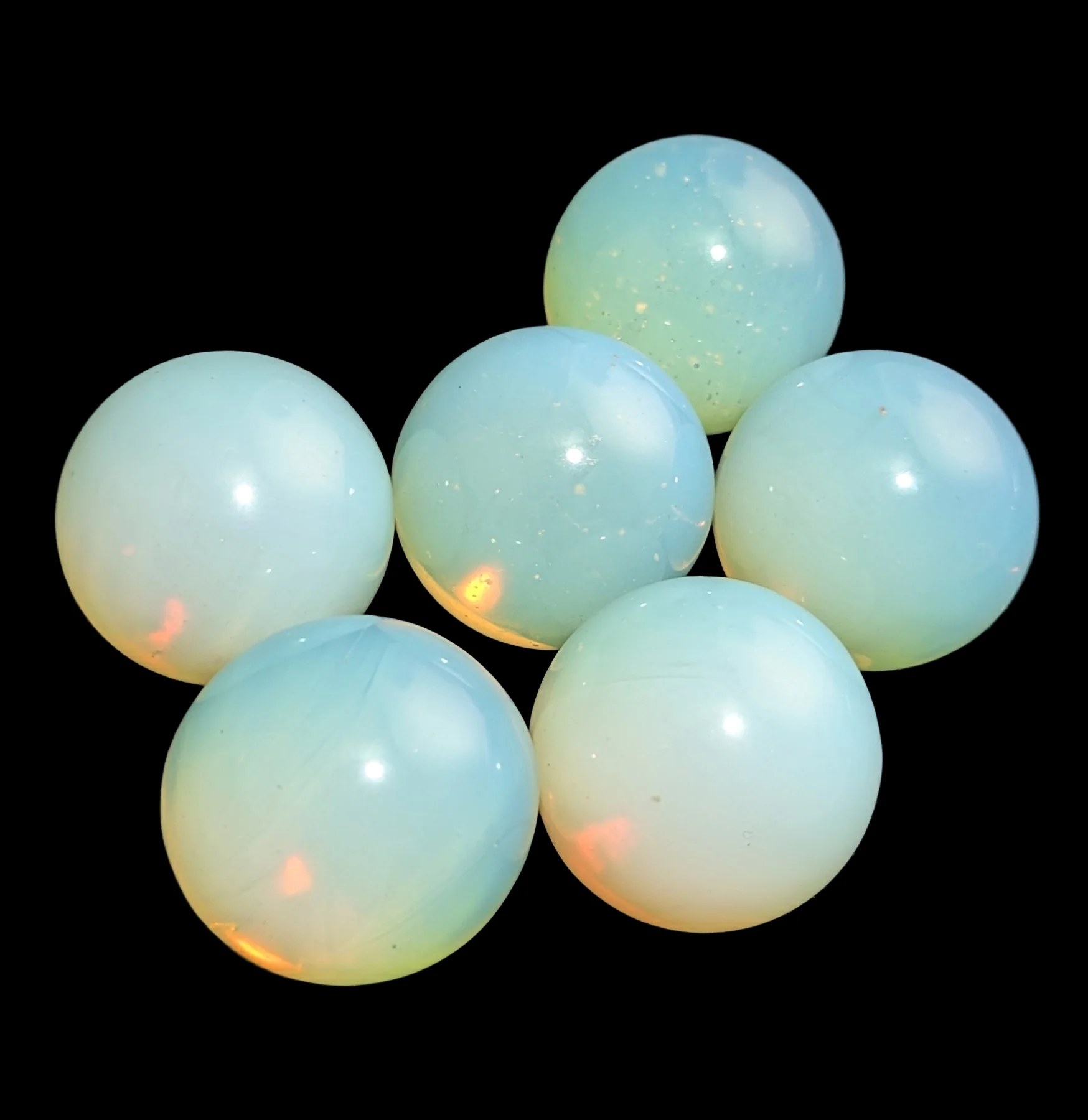 Opalite is a trade name for synthetic opalescent glass and various opal and moonstone simulants. Other names for this glass product include argenon, sea opal, and opal moonstone. While they are man made, they share the same beauty as their natural counterparts. Hiding just below the surface of the frosty blue surface is a warm aura of reds and oranges. You'll be entranced as we are we you see if for yourself.